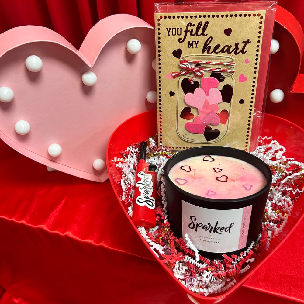 ✨ Includes:• 2-Wick Sugar Blush Soy Candle• Sparked Candle Co. Lighter• “You Fill My Heart” Valentine’s Card